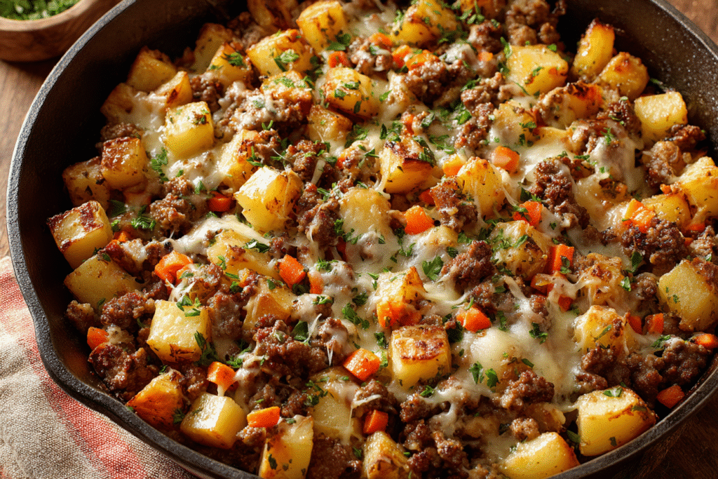 One-Pan Cheesy Meat & Potato Skillet – A Hearty 30-Minute Dinner