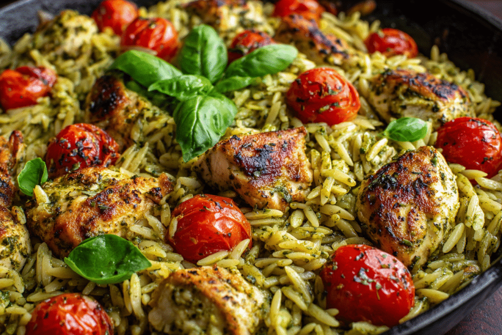 One Pan Chicken & Pesto Orzo – A Cozy Weeknight Skillet Dinner