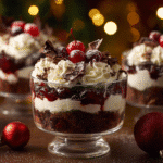 Whether you’re hosting Christmas dinner or attending a holiday potluck, this Black Forest Trifle adds an indulgent yet nostalgic touch to your dessert spread—rich in flavor, deeply satisfying, and visually dazzling with its ruby-red cherries and swirls of cream.