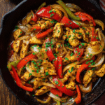 This Black Pepper Chicken is a quick, bold, and deeply flavorful stir-fry inspired by Chinese-American takeout favorites. Tender strips of chicken are tossed with sautéed onions and bell peppers in a dark, glossy sauce packed with the bite of freshly ground black pepper. It’s fragrant, saucy, and pairs perfectly with steamed rice for a fast weeknight meal.