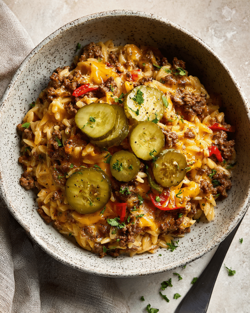 One-Pot Cheeseburger Orzo Skillet – A Cozy Weeknight Comfort Classic