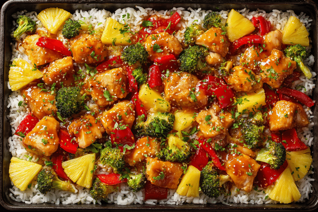 Sheet Pan Hawaiian Chicken with Pineapple and Peppers is a vibrant, juicy dinner thatβs as easy as it is irresistible. With tender chunks of chicken tossed in a sticky-sweet glaze, …