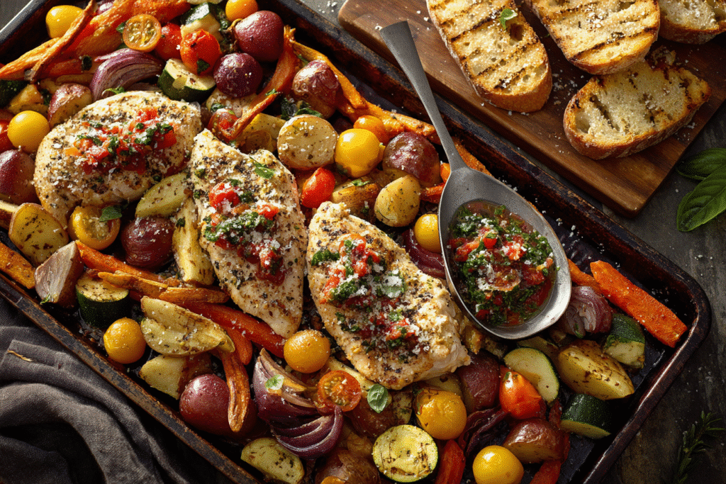Sheet Pan Bruschetta Chicken with Veggies and Grilled Bread is the kind of meal that brings both rustic charm and vibrant flavor to your dinner table β all with minimal …