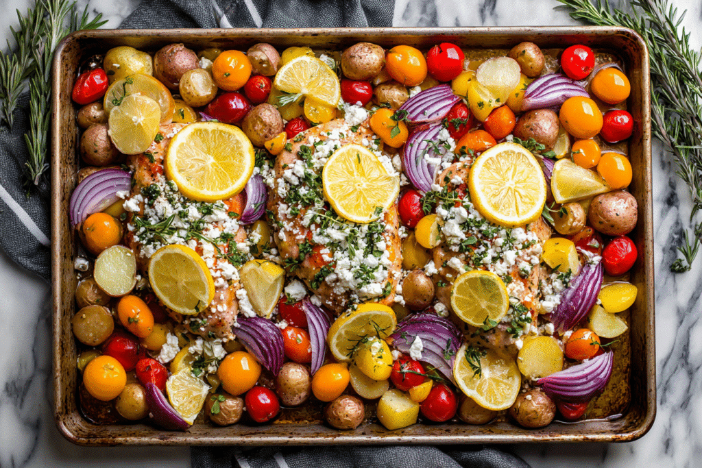 Sheet pan dinners are the weeknight hero we all need β minimal prep, even less cleanup, and maximum flavor. This Herby Feta Lemon Chicken and Veggie Sheet Pan recipe brings …