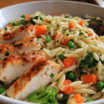 When it comes to cozy, flavorful meals that come together in under an hour, Chicken and Vegetable Orzo is a quiet hero. This dish brings together tender bites of chicken, vibrant seasonal vegetables, and delicate orzo pasta in a savory broth-based sauce that clings to every grain. It’s light enough for a weeknight, but hearty and satisfying enough to keep everyone full.
