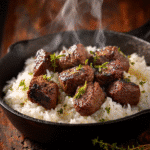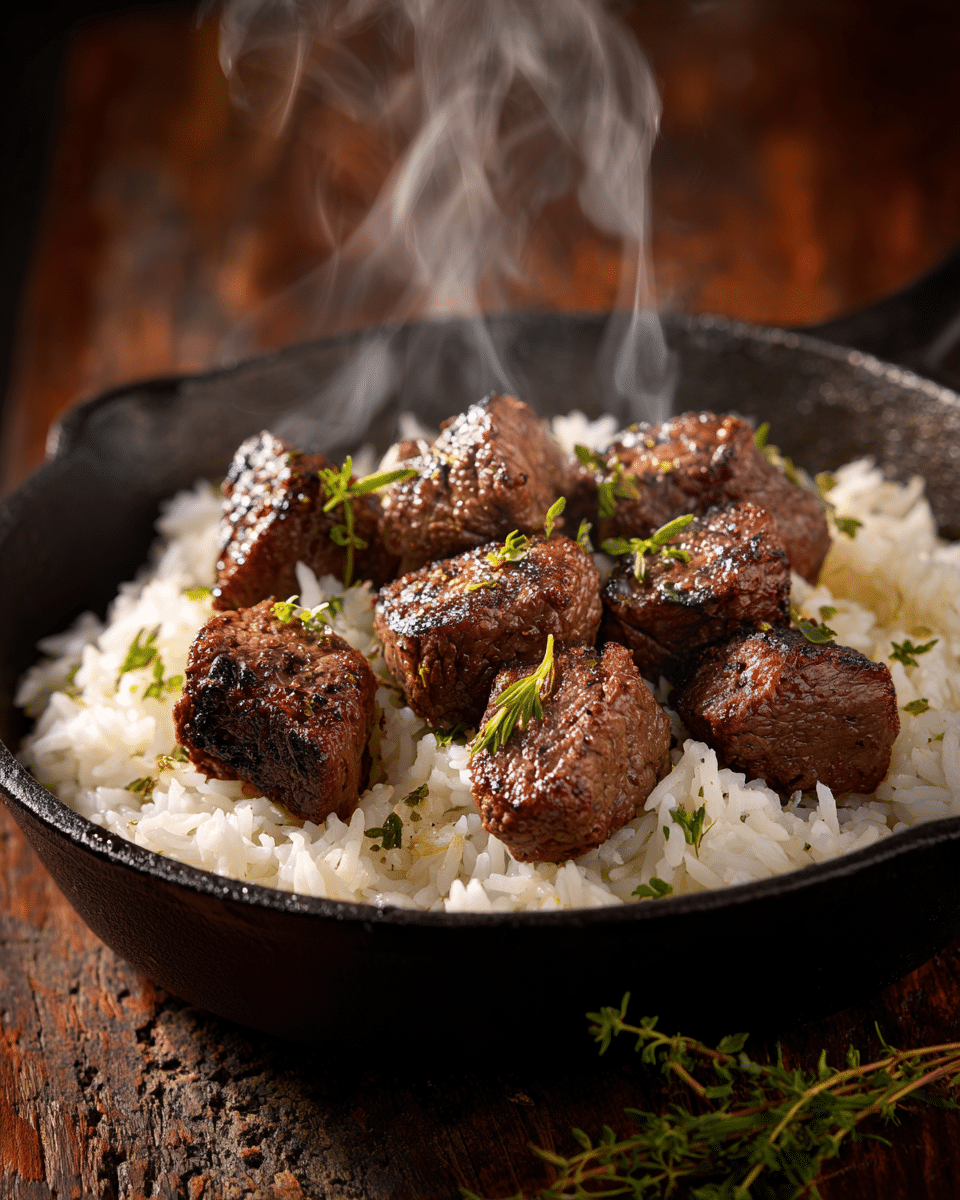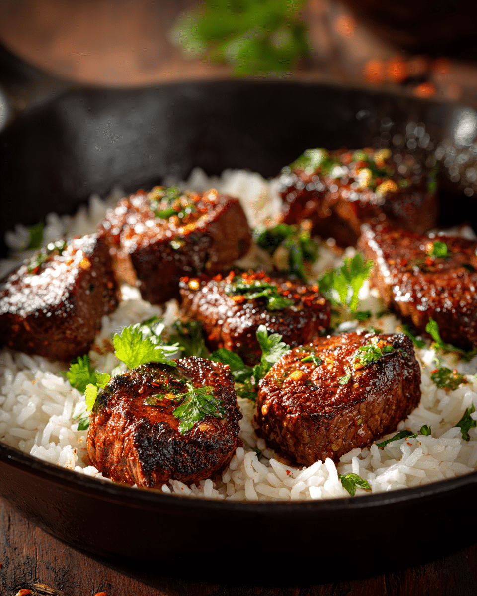 A one-pan steak and rice dish coated in a sweet, savory honey garlic butter sauce. This skillet meal is rich, comforting, and perfect for busy weeknights or cozy weekends.