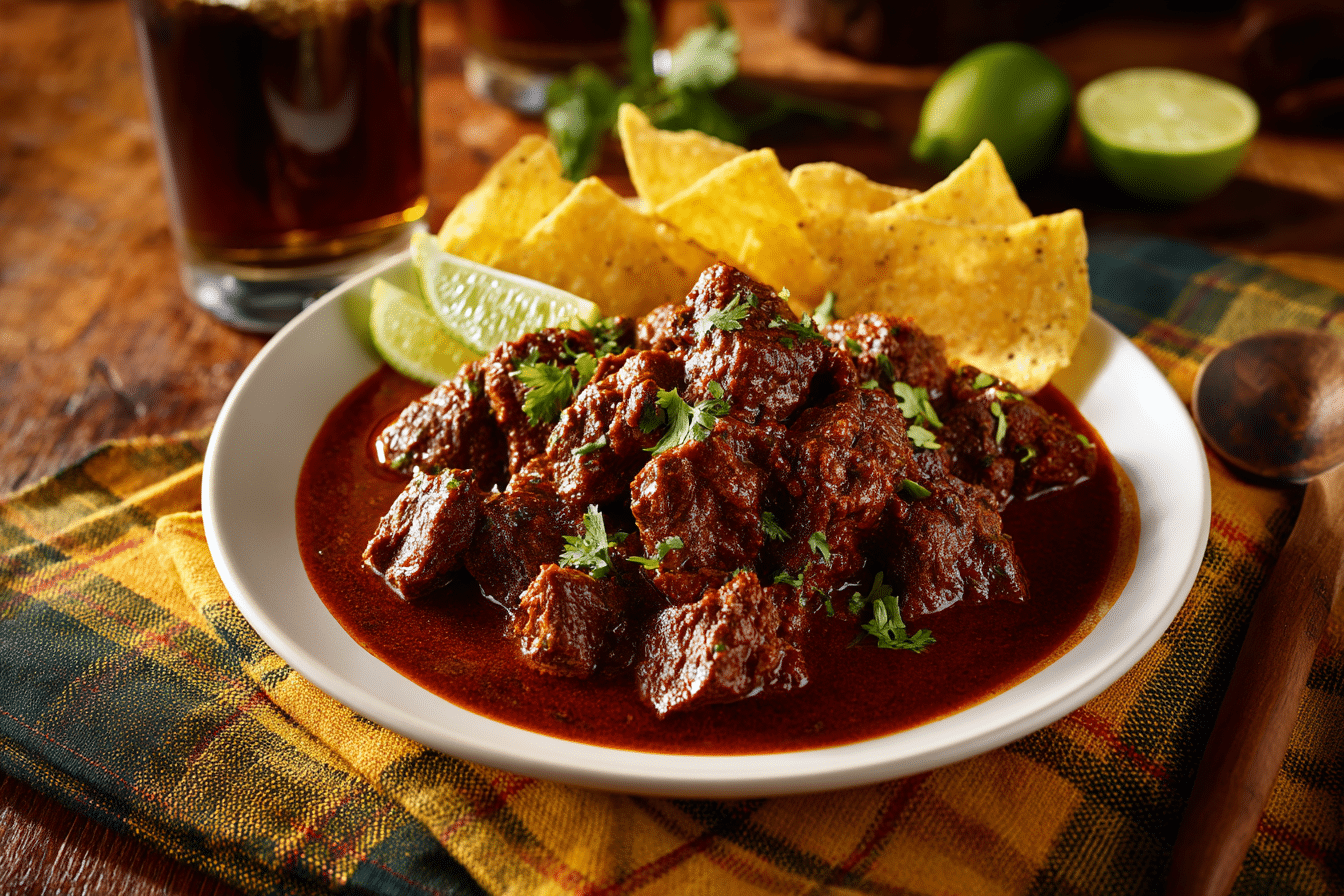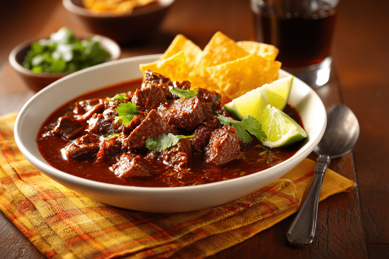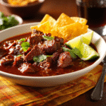 A bold and comforting chili featuring tender beef, smoky dried chiles, beans, and warming spices — a traditional Mexican dish perfect for cozy meals.