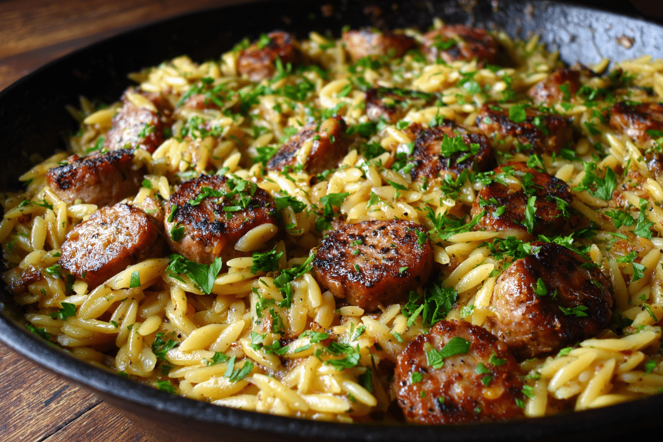 This dish takes inspiration from Mediterranean flavors, with a buttery base, hints of garlic, and the savory depth of browned sausage. The orzo, a rice-shaped pasta, soaks up all the flavor as it simmers, creating a risotto-like texture without the constant stirring.