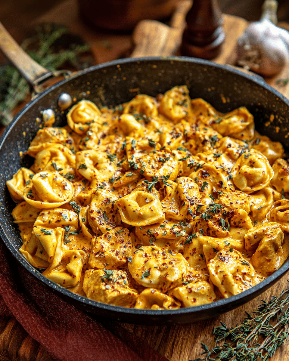Yes, frozen tortellini works well. Just increase the simmering time by 2–3 minutes and keep the lid on while cooking. Make sure it’s fully heated through and tender before adding the cream.