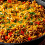 A quick and cozy one-pot dinner that captures the flavor of stuffed peppers — without the fuss. Ground beef, bell peppers, rice, and tomatoes simmer together for a comforting, weeknight-friendly skillet meal.
