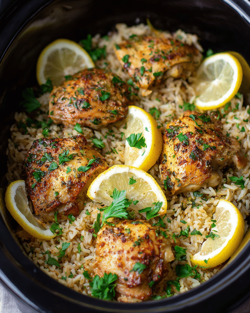 Slow Cooker Lemon Herb Chicken and Rice (Tender, Zesty & Set-It-and-Forget-It!)