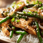 This dish features juicy strips of marinated chicken breast stir-fried with vibrant green beans and onions, all tossed in a glossy ginger-garlic soy sauce. Unlike heavier fried dishes, this one is light, protein-rich, and vegetable-forward — making it perfect for clean eating or weeknight cooking without compromising on flavor.