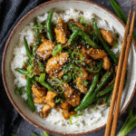 This Panda Express String Bean Chicken copycat recipe brings the bold, slightly sweet and savory flavors of your favorite takeout dish straight to your home kitchen. Juicy chicken breast, crisp-tender green beans, and sautéed onions are tossed in a glossy, garlicky soy-ginger sauce—all ready in under 30 minutes.