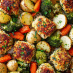 Parmesan Crusted Chicken Sheet Pan Dinner is a weeknight favorite that brings together crispy golden chicken, tender vegetables, and bold Italian flavor — all roasted together in a single pan.
