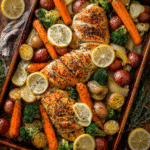 Looking for a simple dinner that’s satisfying, full of flavor, and easy to clean up? This Parmesan Crusted Chicken Sheet Pan Dinner is a weeknight hero. Crispy, golden chicken breasts coated in a cheesy herb crust are roasted alongside tender vegetables — all on one sheet pan. It’s family-friendly, endlessly customizable, and ready in about 40 minutes from start to finish.