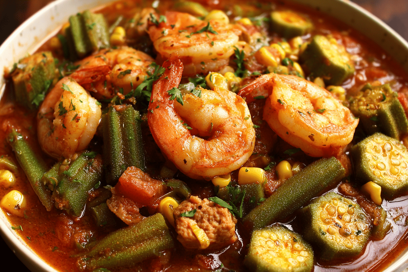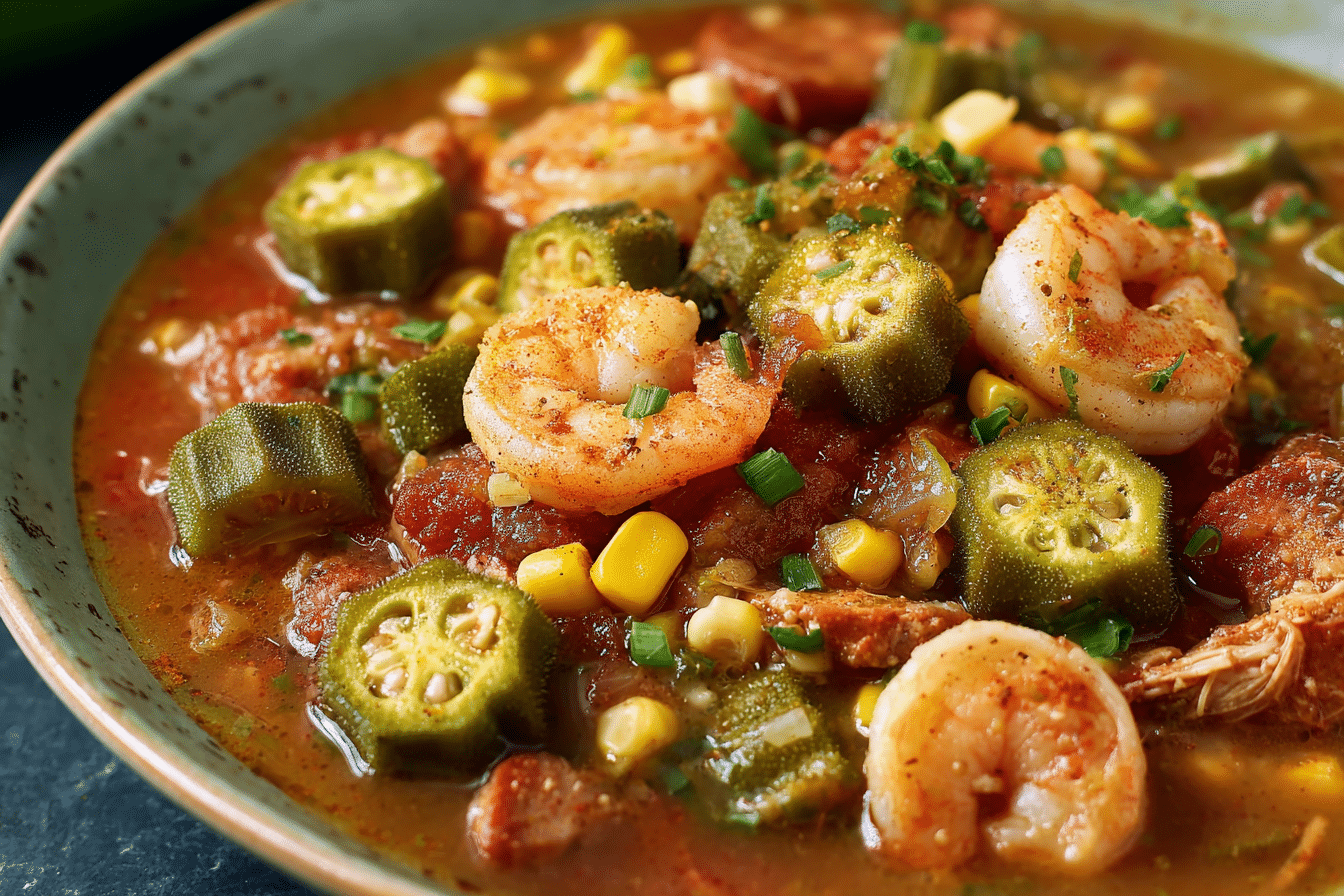 Savory Okra Stew with Chicken, Sausage, and Shrimp – Southern Comfort in a Bowl