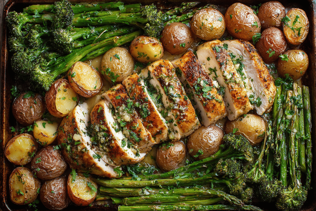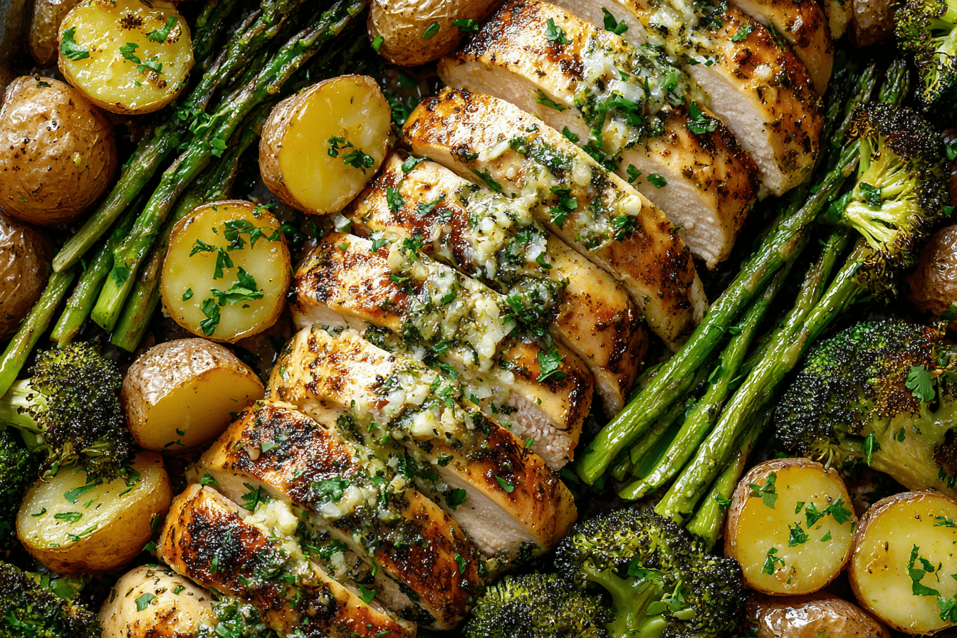 A savory and simple one-pan dinner featuring juicy garlic butter chicken and perfectly roasted vegetables. Ideal for weeknights, meal prep, or family dinners.