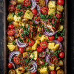 If you’ve ever craved a tropical twist on your dinner routine, Sheet Pan Hawaiian Chicken with Pineapple and Peppers is about to become a new favorite. This easy, colorful recipe brings together juicy chicken, vibrant bell peppers, and caramelized pineapple all roasted on a single pan. It’s sweet, tangy, savory, and ready in about 40 minutes — perfect for busy weeknights or relaxed weekend meals.