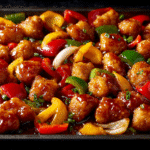 Sheet pan sticky sweet and sour chicken is your answer to a weeknight craving for bold, tangy, and irresistibly glossy Chinese-inspired flavors — made right in your oven with minimal mess. Tender chicken pieces roast on a single pan alongside colorful bell peppers and onions, then get tossed in a homemade sticky sweet and sour sauce that’s savory, zesty, and perfectly balanced.