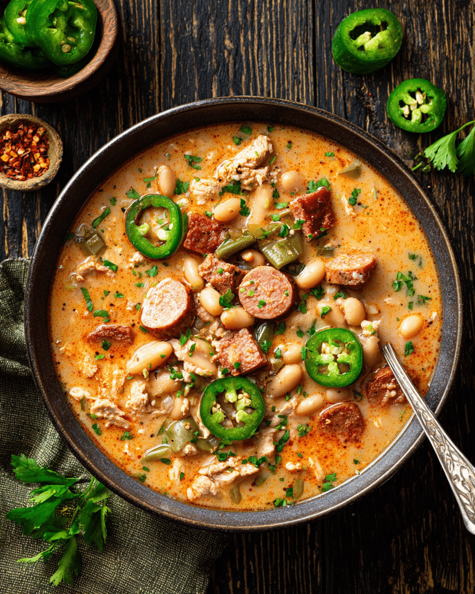 PrintSpicy Cajun Twist on Classic White Chicken Chili – A Bold, Smoky Comfort Bowl